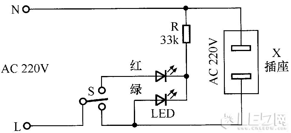 图3 交流电源插座指示灯电路