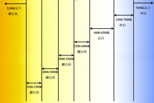 光源色温不同,光色也不同。色温在3300K以下有稳重的气氛,温暖的感觉;色温在3000--5000K为中间色温,有爽快的感觉;色温在5000K以上有冷的感觉。不同光源的不同光色组成最佳环境。