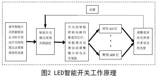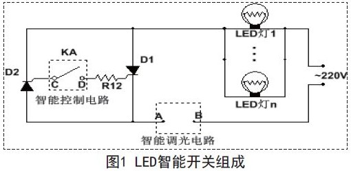 本文设计的LED智能开关主要包含两大部分:智能控制电路和智能调光电路,如图1所示。