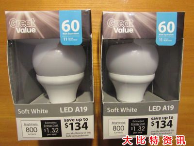 沃尔玛LED是塑料封装,而CREE公司和飞利浦LED为陶瓷封装。陶瓷封装的LED相比塑料更耐热、不易老化。Cree公司采用陶瓷封装的LED可能是它要提供灯泡10年保修的原因之一;沃尔玛只提供3年质保。