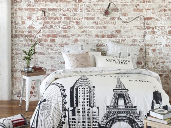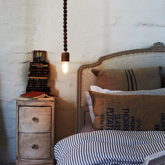 线性吊灯相对于整个灯饰类别来说,本身就是一种突破,如果能在灯具的设计上再加上一点点创意,那就更能凸显它的与众不同。在这间卧室中,为了呼应背景墙的风格,吊灯线也一并做了颓废风格的改造,使得整个卧室看上去慵懒、随意但又不减悠闲。