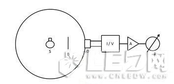 积分球内部是用白色漫反射材料均匀地涂布的,材料要求漫反射特性好,无光谱选择性。设球壁的反射为ρ,比球半径为R,光源S所发出的总光通量为φ。根据积分球理论,光源S在球壁上产生的反射照度为