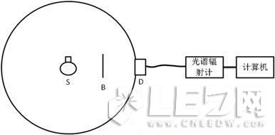 对于一个确定的积分球,R和ρ都是固定的。于是上式表示,由于积分球内壁的多次漫反射作用,光源在球内壁各点形成的间接照度值相等,且正比于光源的总光通量。图1中,挡板B的作用是阻挡光源S直接照射到探头D。若积分球内去掉挡板B,从光源发出的光会直接照射到探头D上,此时探头D处位置的照度将依赖于光源在此方向上的发光强度。球内壁上各点照度值不相等,将不正比于光源的总光通量。