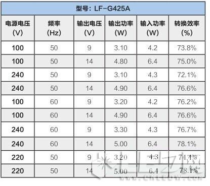 经过测试,5个型号的LED控制装置中,型号为LF-G425A的转换效率最高达到78.1%,最低时为72.1%,为5个型号中转换效率最高的;型号为LQC100VA-40HNA的转换效率最高只达到53.8%,最低时只为51.7%,为5个型号中转换效率最低的一个。