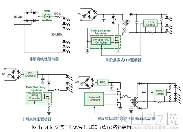 文章摘要: 根据市场研究机构的预估,到2015年中国LED通用照明需求将达100亿美元,2020年将达220亿美元。LED照明逐步取代传统照明是大势所趋。不过,LED通用照明有许多挑战,如功率密度、功率因数校正(PFC)、空间受限和可靠性等。安森美半导体致力于为LED照明提供宽广阵容解决方案,推出各种符合最新LED照明标准的产品,包括用于通用照明的AC-DC LED驱动电源方案。 通用照明挑战及交流主电源供电LED驱动器拓扑 由于LED总光效要求及散热限制,能效对低功率应用尤其重要;许多情况