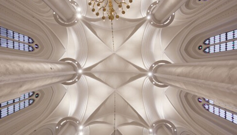 该教堂最大的特点是其顶部的交叉穹窿式设计,但这种设计也为带来了很大的难题和挑战。设计团队成功将自然光线与光相结合,凸显了建筑顶部的结构特点和艺术风格。而穹窿下方所采用的光线则相对较为柔和,以便为游客和朝圣者带来更好的感受和体验。