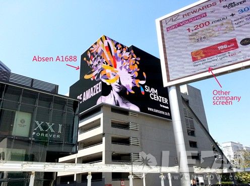 文章摘要: 近期,艾比森光电泰国、英国、日本、马来西亚等市场的多名国际销售不约而同地收到了客户赴泰国旅游时带回来的一份特别礼物——1张照片。照片内容是客户在泰国购物天堂Siam Center前的留影,只见照片里一块大尺寸的六面形90°炫彩异型特别醒目。很多客户在彩信中写道:“这块大屏太美了,我简直无法用语言形容我看到它那一刻的惊喜与诧异……”客户所说的正是艾比森在泰国Siam Center 打造的A1688大尺寸异型屏。 艾比森光电在泰国Siam Center打造的90°炫彩异型屏 Si