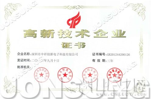 中祥创新综合报道:深圳中祥创新电子科技有限公司( )于近日收到深圳市科技工贸和信息化委员会、深圳市财政委员会、深圳市国家税务局、深圳市地方税务局联合颁发的高新技术企业证书,有效期三年。