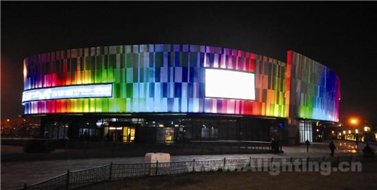 文章摘要: 本文以动态LED灯具介绍了华侨城哈克儿童体验馆LED景观照明工程系统实现的过程,包括LED投光灯、LED轮廓灯、CS-8000控制系统等主要应用产品的特点。 一、概述 华侨城哈克儿童体验馆位于成都市华侨城三环路旁,为了体现作为儿童体验馆的建筑设计思想,主体墙面部分采用七彩变色的大功率LED灯具,在整体上增强了建筑群夜景照明的气势的同时将建筑在视觉空间上的纵深感充分体现出来,整体效果色彩斑斓、活泼大方。局部建筑檐口结构的部位采用七彩变色LED轮廓灯作补充,建筑群整体效果得到加强