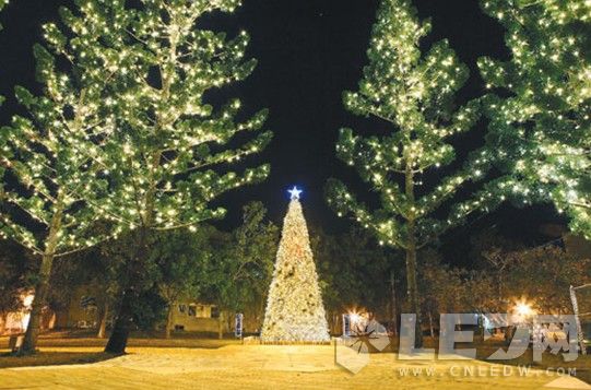 每一环安插绑叉叶丛,每丛约1公尺宽的绑叉叶丛共387丛,捆绑于叶丛上的环保LED灯总数约6万盏。整棵树总重量高达3吨重。由于高度实在太高,还须出动大型吊挂车才能将树身组装完成,总工程时数耗时35个小时。