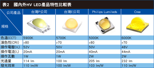工研院已将相关微晶粒开发专利技转国内LED大厂晶元光电,使其拓展至HV LED领域,并成功开发出具备高发光效率的HV LED晶片,陆续与国际LED知名大厂及国内如亿光、葳天、福华、光宝等LED封装厂进行合作,推出HV LED相关应用照明产品(表2)。